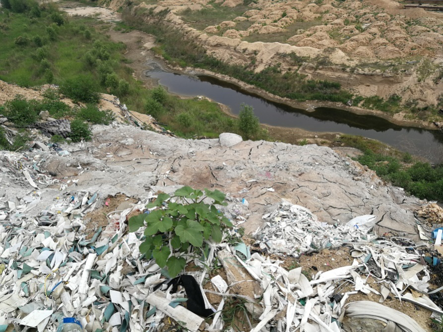 現(xiàn)場(chǎng)檢查發(fā)現(xiàn),在大沙河定州段遠(yuǎn)遠(yuǎn)望去,河堤上堆滿(mǎn)了生活垃圾、工業(yè)廢渣、邊角料、醫(yī)療廢物等多種固體廢物,各種垃圾“應(yīng)有盡有”,形成了一個(gè)長(zhǎng)約3公里的“垃圾帶”。與長(zhǎng)度同樣驚人的,是“垃圾帶”的寬度,垃圾一直從河堤延伸至河床上,斜坡高度達(dá)到10米左右。