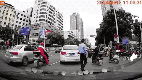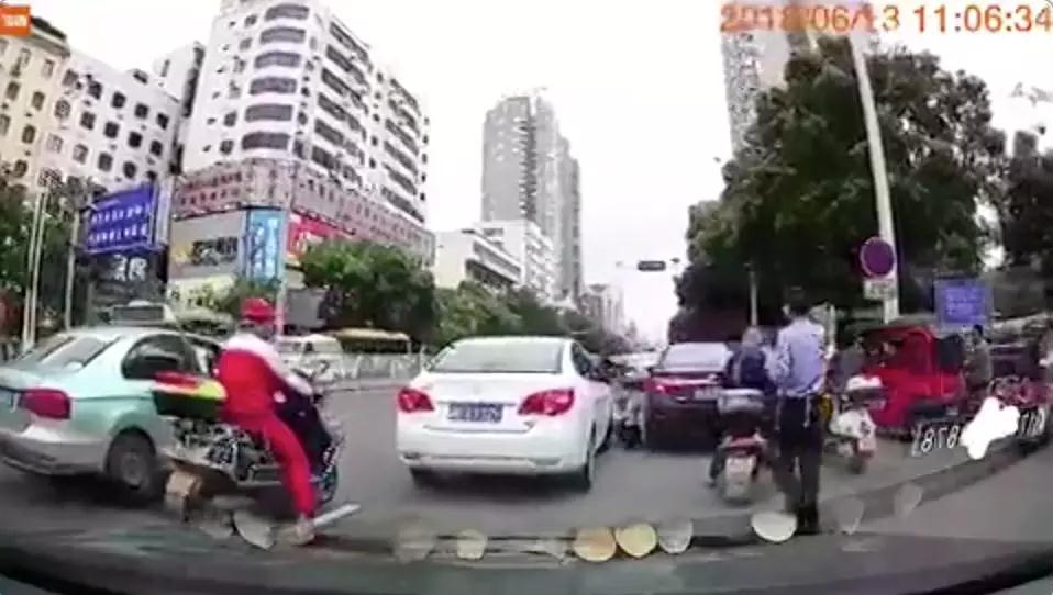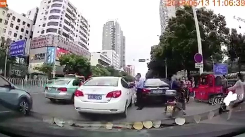 視頻顯示,6月13日中午11點(diǎn)06分,一名在湖南衡陽(yáng)街頭執(zhí)勤的交警正要對(duì)一輛車號(hào)為“湘DE**26”的白色轎車進(jìn)行執(zhí)法。就在該轎車停車的瞬間,這名交警毫無征兆地倒在地上,而那輛白色的轎車本能地向后退了一下。