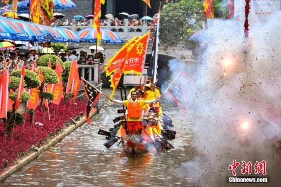 6月18日,廣州獵德村舉行端午龍舟勝景活動,吸引了大批民眾駐足觀看。中新社記者 陳驥旻 攝