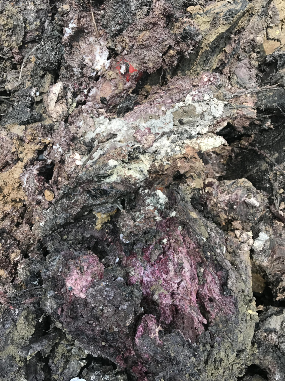 圖5 挖出的化工廢料五顏六色,味道刺鼻