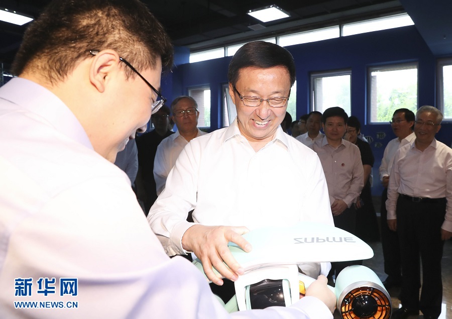 6月19日,中共中央政治局常委、國(guó)務(wù)院副總理韓正在天津市調(diào)研京津冀協(xié)同發(fā)展工作。這是韓正考察天津深之藍(lán)水下新視界科技有限公司。新華社記者 丁林 攝