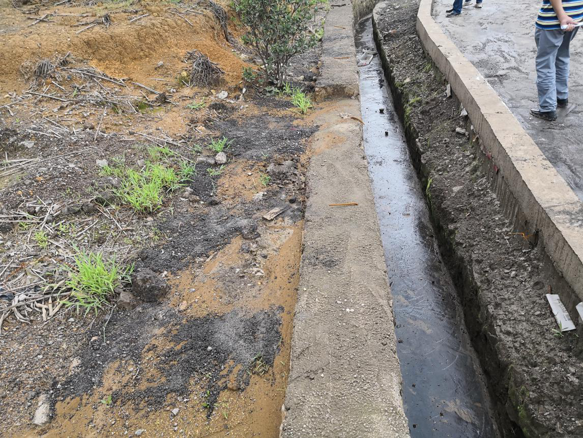 廠區(qū)沒有建設初期雨水收集系統(tǒng)?,F(xiàn)場檢查時正值雨后,地面散落的含重金屬廢渣、粉塵經雨水沖刷進入雨水溝,最終匯入廠區(qū)低洼處。但由于收集池容積小,大量雨水混著含有重金屬的污水溢流至廠區(qū)道路,廠區(qū)污水橫流。