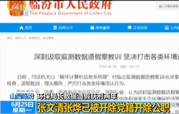 就在昨天(24日),臨汾市人民政府通過(guò)其官方網(wǎng)站發(fā)布公告稱(chēng),5月27日,已對(duì)涉案人員市環(huán)保局原局長(zhǎng)張文清、市環(huán)保局辦公室原負(fù)責(zé)人張燁2人作出開(kāi)除黨籍、開(kāi)除公職的處理;對(duì)市環(huán)境監(jiān)測(cè)站原聘用人員張永鵬、李皇濤2人解除勞務(wù)合同。