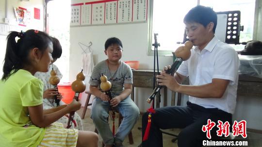 李支友教學(xué)生吹葫蘆絲?!⊥ㄓ崋T 夏程鵬 攝