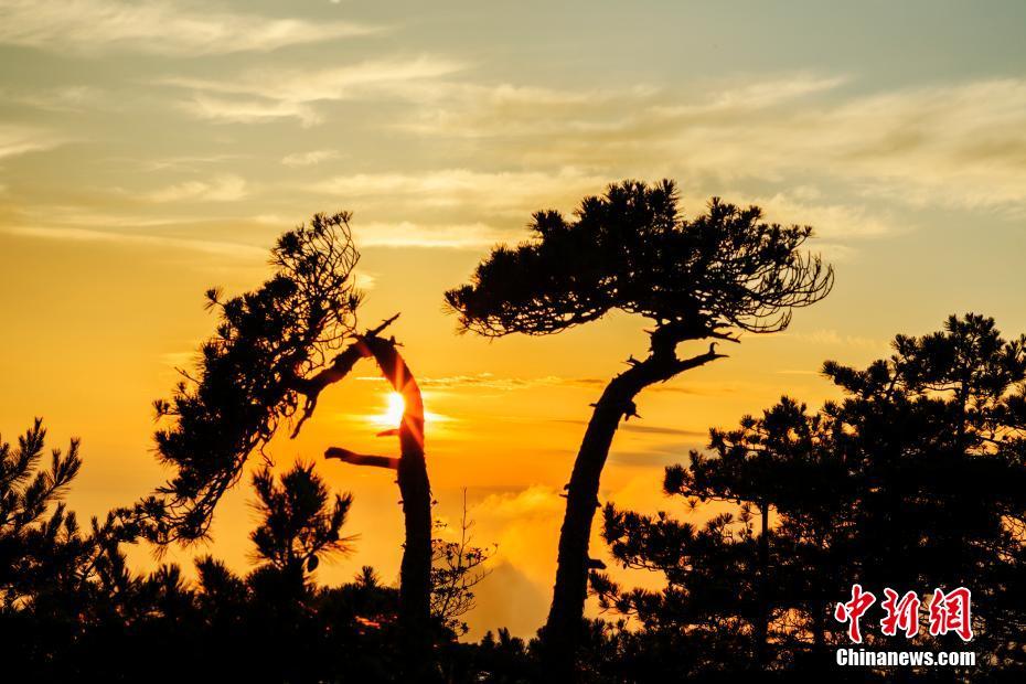 安徽黃山現云海晚霞