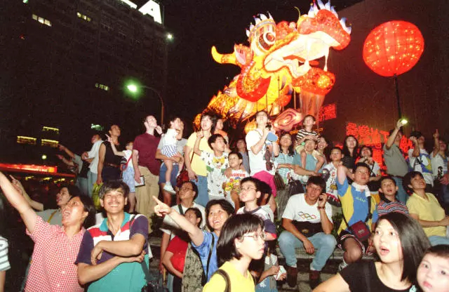 1997年7月1日晚,香港特區(qū)政府為慶祝香港回歸舉行萬丈光芒慶回歸煙花會。圖為觀賞煙花的香港市民。新華社發(fā)