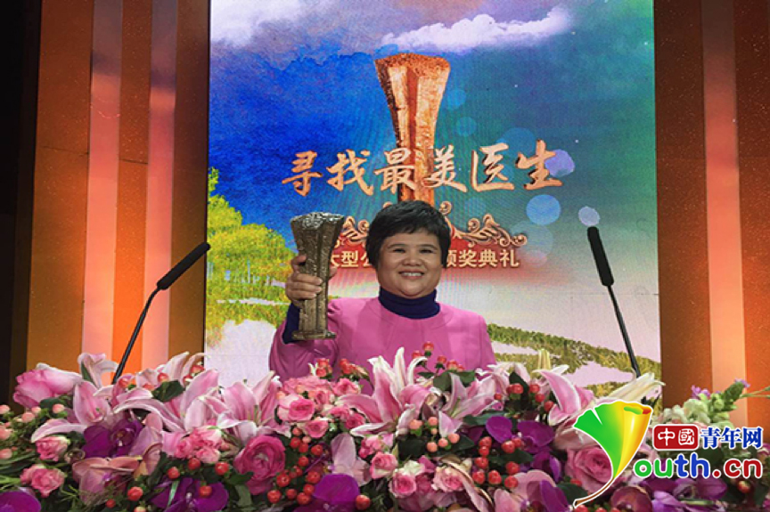杜麗群在“尋找最美醫(yī)生”頒獎(jiǎng)典禮上。廣西南寧市第四人民醫(yī)院供圖