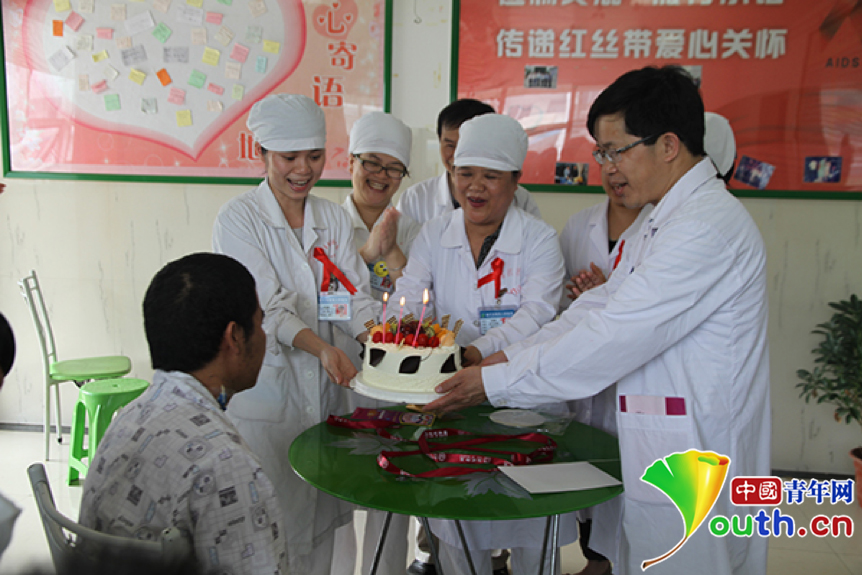 杜麗群和同事們一起給艾滋病患者過(guò)生日。廣西南寧市第四人民醫(yī)院供圖