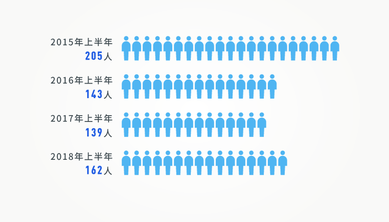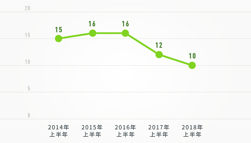 2015年以來(lái),上半年廳局級(jí)干部落馬數(shù)量走勢(shì)圖