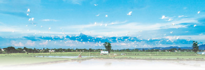7月8日,安徽省廬江縣泥河鎮(zhèn)境內(nèi)的國家級(jí)稻漁共養(yǎng)示范區(qū)內(nèi),白鷺在藍(lán)天下飛翔。左學(xué)長攝(人民視覺)