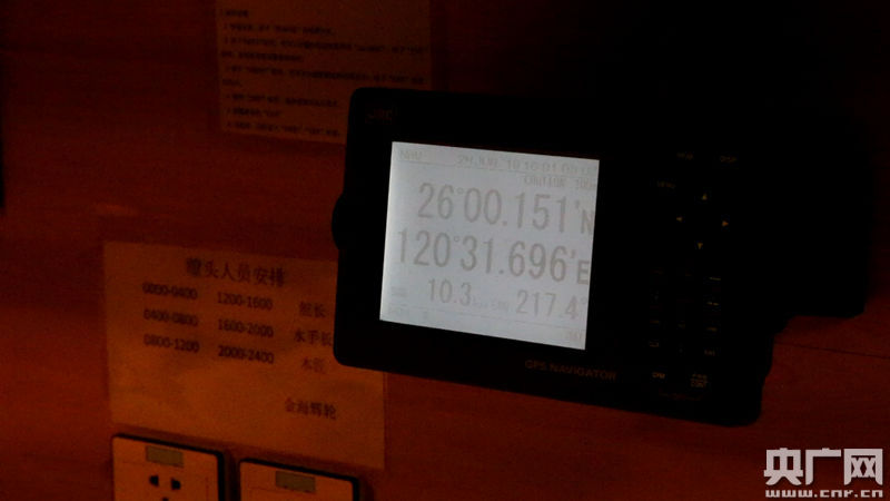 大海變幻莫測(cè),但看久了卻乏味,這乏味更讓人覺(jué)得船晃得厲害,更像睡在火車(chē)臥鋪上,周?chē)Z轟作響。作為深度睡眠障礙者,來(lái)了船上幾乎弄丟了生物鐘。我的房間與駕駛臺(tái)僅一層之隔,決定索性熬個(gè)通宵,跑去找駕駛室大副陳捷、二副林志劍,三副陳澤龍聊聊天兒。