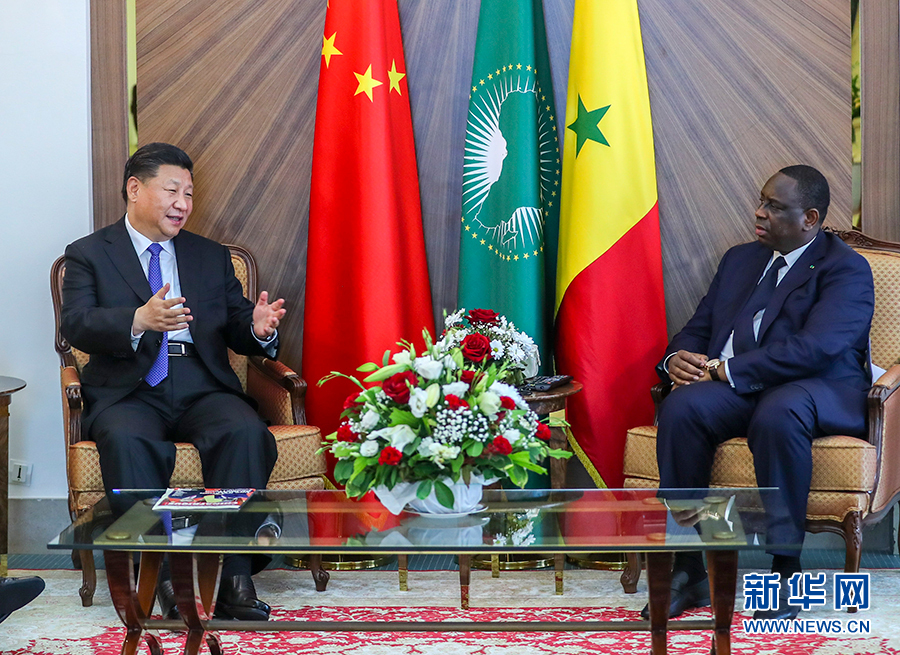 習近平強調,我贊賞總統(tǒng)先生從戰(zhàn)略高度看待中塞關系,積極響應“一帶一路”倡議,大力支持中非合作。雙方要密切高層交往,在涉及彼此核心利益和重大關切問題上相互支持。要加強發(fā)展戰(zhàn)略對接和政策溝通,我們歡迎塞內加爾成為第一個同中國簽署“一帶一路”合作文件的西非國家。我們希望以此為契機,全面提升中塞合作水平。中方愿繼續(xù)秉持“授人以漁”的理念,擴大、深化同塞方合作,增強塞方自主發(fā)展能力。要密切人文交往,促進民心相通。要加強執(zhí)法安全合作,中方支持塞方加強反恐、維和、維穩(wěn)能力建設。中方支持塞方在國際和地區(qū)事務中發(fā)揮更大作用,愿同塞方在非洲和平與安全、聯合國事務、氣候變化等重大國際和地區(qū)事務中加強溝通和協(xié)調,維護非洲和發(fā)展中國家共同利益。