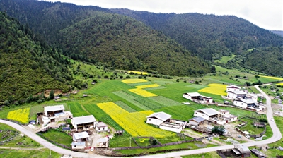 上圖為普達(dá)措國(guó)家公園洛茸村一景(7月18日無(wú)人機(jī)拍攝)。新華社記者 胡超 攝