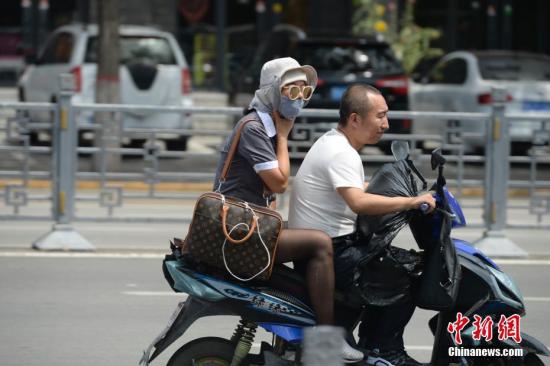 資料圖:氣溫升至37℃以上,遮陽傘、墨鏡、口罩等用品成了民眾出行的必備品。中新社記者 劉文華 攝
