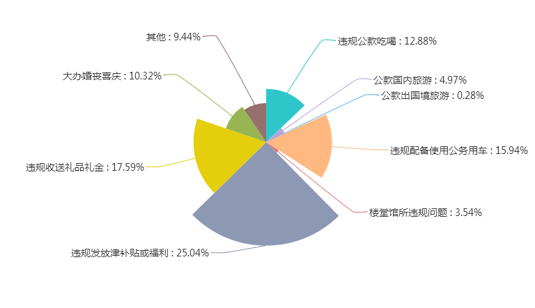 在違反中央八項規(guī)定精神問題的類型上,違規(guī)發(fā)放津補貼或福利、違規(guī)配備使用公務(wù)用車、大辦婚喪喜慶、違規(guī)收送禮品禮金等問題依然多發(fā),這四類“老問題”占比超過70%,“吃喝玩樂”慣性仍然很強。