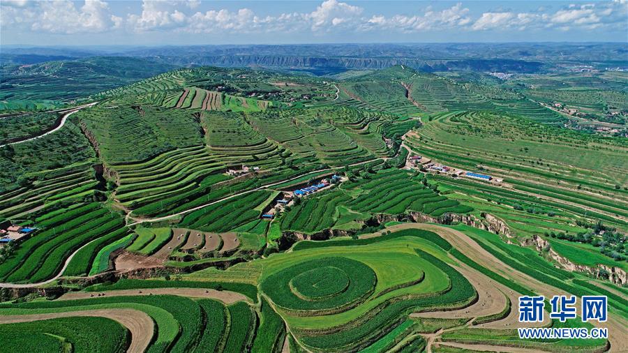 寧夏固原市彭陽(yáng)縣金雞坪梯田公園(7月16日攝)。 新華社記者 王鵬 攝