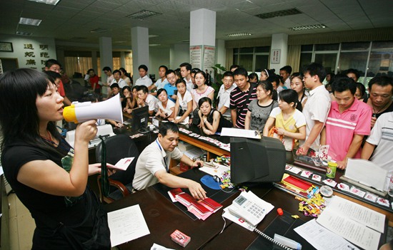 2008年8月8日早晨,湖南省常德市武陵區(qū)政務(wù)中心婚姻登記處,上百對前來辦理婚姻登記的市民排起長龍。潘敬林/攝