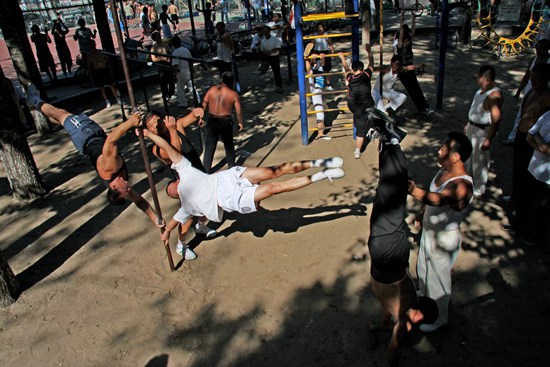2008年8月24日,天津市河北區(qū),公園里健身的人群。程子/攝