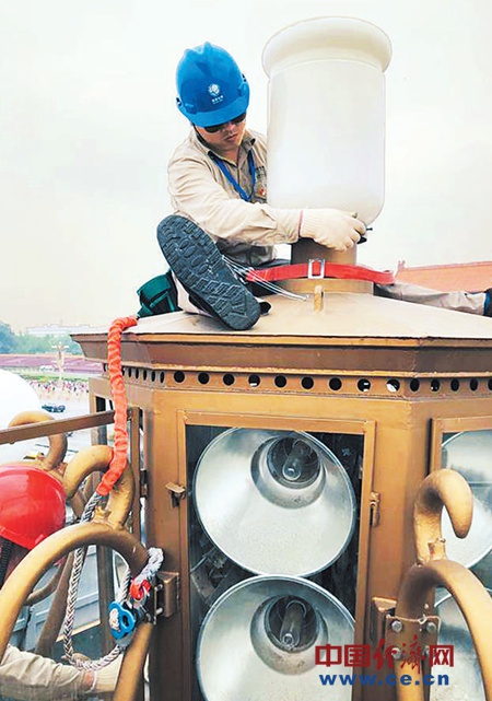 每年5月份到9月份,是北京最炎熱的季節(jié),也是華燈班最忙碌的時候。為了每年國慶節(jié)期間華燈能夠以最好的狀態(tài)向世人展示,這個北京最難熬的幾個月華燈班要對253基華燈、6000多個燈球做全方位的清洗檢修。同時,還要對華燈的光源、線路、鎮(zhèn)流器、保險等核對、記錄,為日常運行維護工作提供詳實依據(jù)。