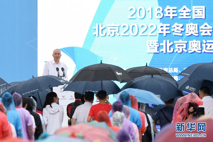北京市委書記、北京冬奧組委主席蔡奇出席活動(dòng)并宣布:“2018年全國‘全民健身日’主會(huì)場活動(dòng)開始,2022年北京冬奧會(huì)和冬殘奧會(huì)吉祥物全球征集發(fā)布啟動(dòng)?!?/p>