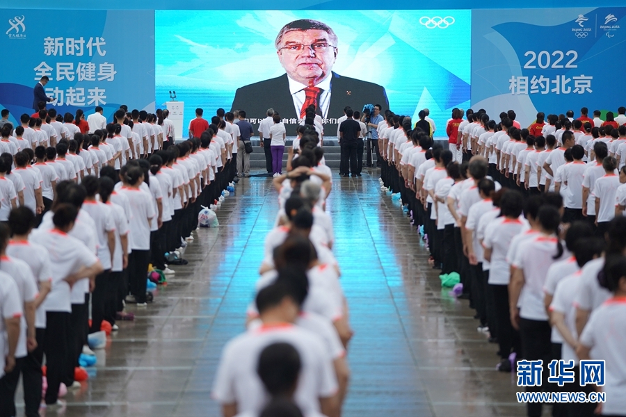 當(dāng)天的活動(dòng)現(xiàn)場,2022名機(jī)關(guān)干部、企業(yè)職工、社區(qū)居民表演了第九套廣播體操,展現(xiàn)了廣大北京市民喜迎冬奧會(huì)的熱切心情。