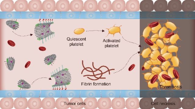 聶廣軍說,納米機器人被注射進體內(nèi)后,只有腫瘤才具有能打開“鎖”的“鑰匙”。“開鎖”后,“殺手”凝血酶被釋放出來,會召集來血小板、纖維蛋白原,幾個小時內(nèi)在腫瘤血管形成巨大血栓,切斷血液供應(yīng),從而“餓死”腫瘤。
