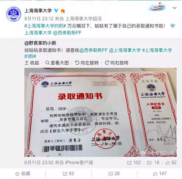 原來前些日子,一位名叫“西弗勒斯FF”的網(wǎng)友發(fā)微博稱,自己是上海松江區(qū)寵物鵝的主人,由于要搬家,養(yǎng)了一年半的鵝無法繼續(xù)養(yǎng)下去,想問上海海事大學能不能幫忙收養(yǎng),并稱自己的鵝非常英俊。