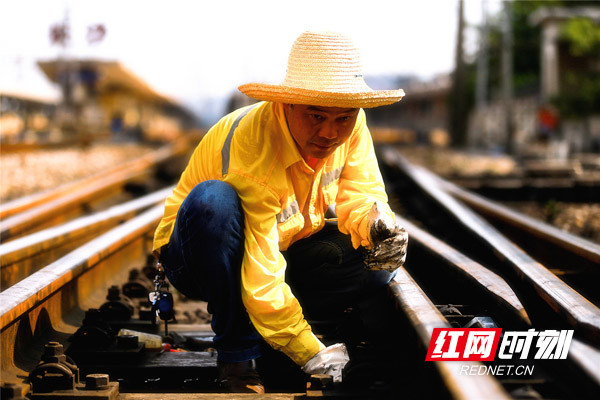 在相隔不到20米的作業(yè)地點,長沙信號工區(qū)工長胡正海帶領工友們對另一處道岔、軌道電路等設備進行巡視和設備注油作業(yè)。“人會因高溫天氣顯得更加疲憊,設備也會受到高溫天氣的影響,所以無論太陽多么炙熱,設備巡視必不可少。”胡正海一邊擦汗一邊介紹。