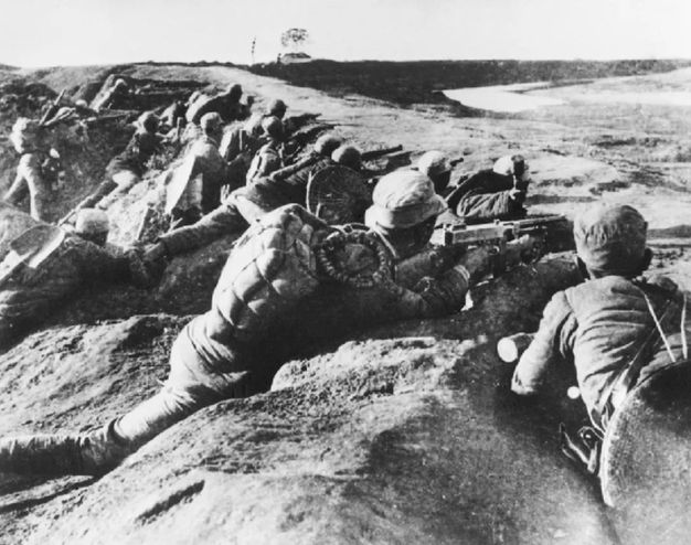 1937年抗日戰(zhàn)爭(zhēng)全面爆發(fā)后,中國(guó)共產(chǎn)黨在南方八省的紅軍及游擊隊(duì)改編為國(guó)民革命軍陸軍新編第四軍(簡(jiǎn)稱新四軍)。這是1938年11月3日,新四軍戰(zhàn)士在馬家園戰(zhàn)斗中打擊敵人。新華社發(fā)