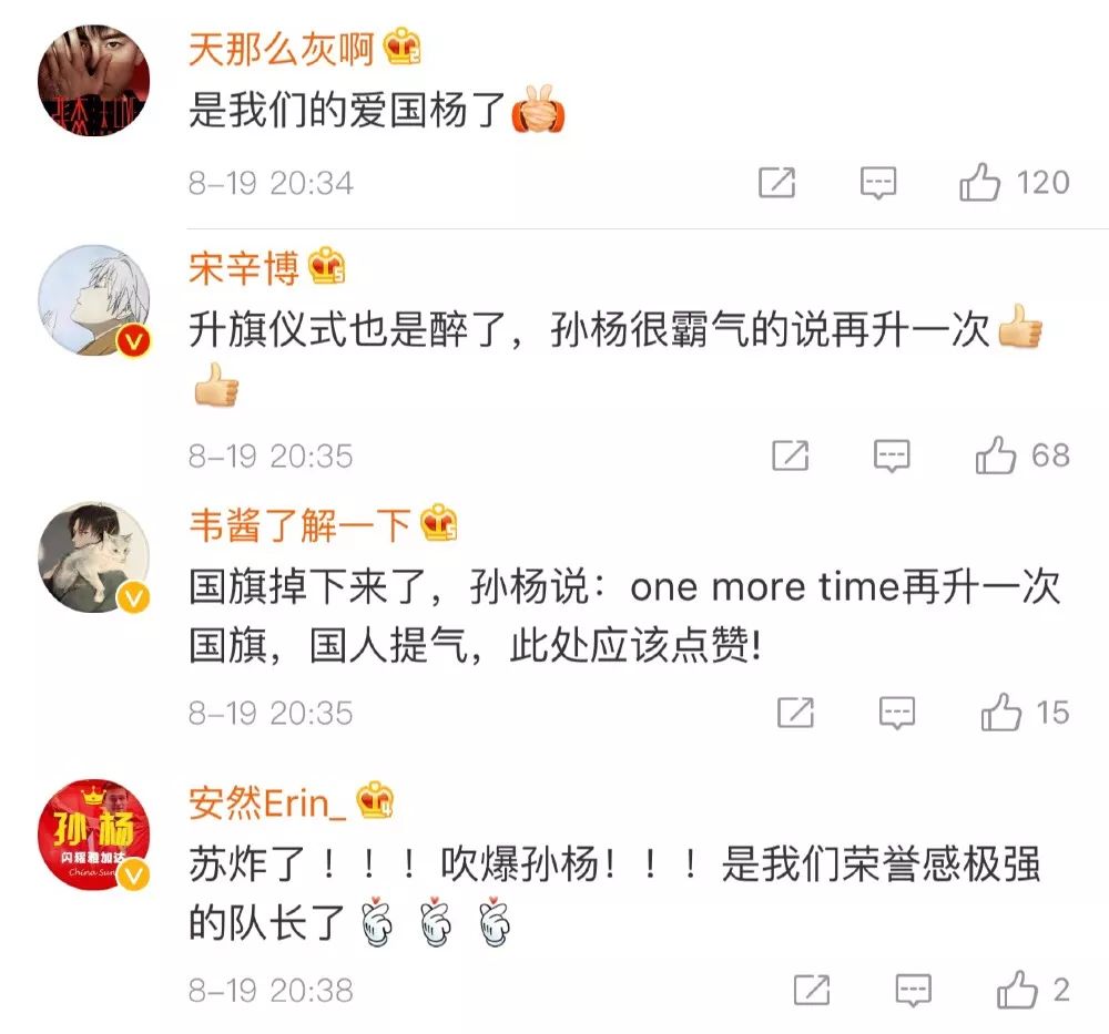 孫楊看到國(guó)旗桿掉落
