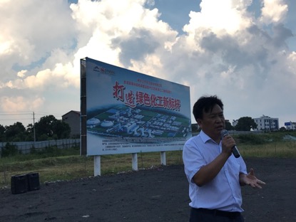 湖北三寧化工負責人介紹,該公司距長江最近距離只有五六十米,目前正在建設新廠房準備搬遷。(孔華/攝)