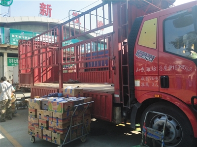 這幾天,在北京新發(fā)地市場(chǎng),還出現(xiàn)了山東菜販從新發(fā)地進(jìn)菜回運(yùn)的情況。