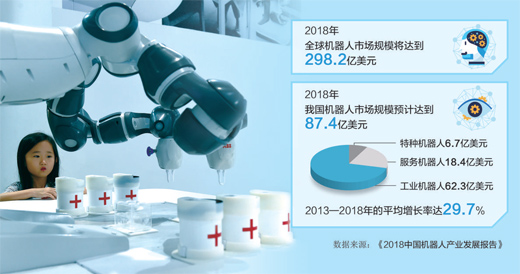 在2018世界機(jī)器人大會(huì)上,中國(guó)電子學(xué)會(huì)發(fā)布的《2018中國(guó)機(jī)器人產(chǎn)業(yè)發(fā)展報(bào)告》(以下簡(jiǎn)稱(chēng)《報(bào)告》)顯示,2018年全球機(jī)器人市場(chǎng)規(guī)模將達(dá)到298.2億美元,其中工業(yè)機(jī)器人占將近六成。