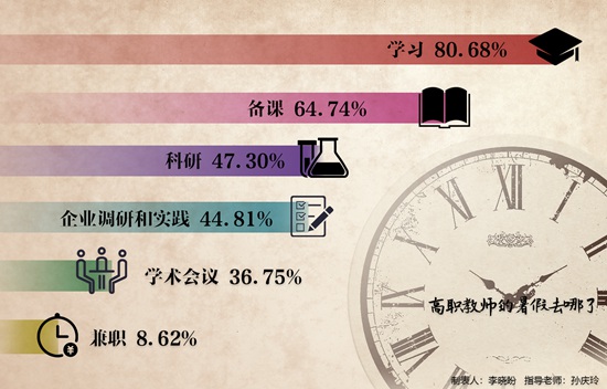 調(diào)查顯示,“學(xué)習(xí)”“備課”是高職青年教師暑期間的“重頭戲”。