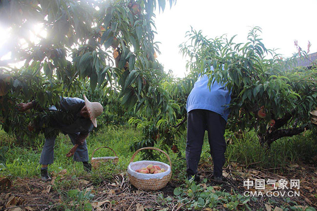 7月20日,為應(yīng)對臺(tái)風(fēng)“安比”,上海市金山區(qū)農(nóng)業(yè)部門組織農(nóng)戶搶收蟠桃和葡萄。顧秀龍 供圖