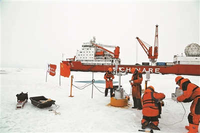 “和以往的北極科考相比,‘九北’冰上作業(yè)涉及的學(xué)科和種類(lèi)沒(méi)有太大差別?!钡瓶缄?duì)首席科學(xué)家助理雷瑞波總結(jié)稱(chēng),這次冰上作業(yè)的一個(gè)顯著特點(diǎn)是加強(qiáng)了無(wú)人值守觀測(cè)系統(tǒng)的布放,包括3套自動(dòng)氣象站、2套無(wú)人冰站、3個(gè)海洋剖面浮標(biāo)、24個(gè)海冰物質(zhì)平衡浮標(biāo)、15套海冰漂移浮標(biāo)等?!按舜尾挤诺臒o(wú)人觀測(cè)系統(tǒng)的數(shù)量創(chuàng)下歷次北極科考之最,并且其中大部分(約占80%)均為我國(guó)自主研發(fā)或集成?!崩兹鸩ㄕf(shuō),這些將為研究北極地區(qū)氣、海、冰的相互作用過(guò)程及其對(duì)北極生態(tài)系統(tǒng)和海洋環(huán)境的影響提供有力支撐。