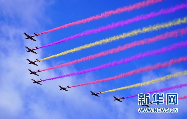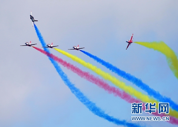 8月30日,“天之翼”飛行表演隊(duì)在空軍航空開放活動(dòng)上進(jìn)行飛行表演。 新華社記者 王東明 攝
