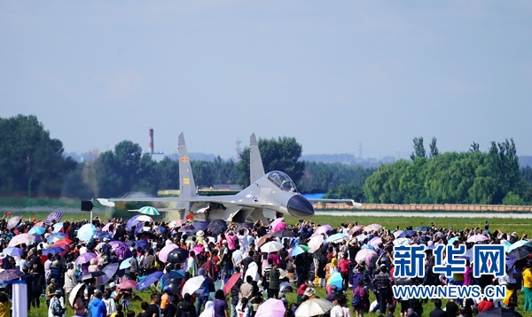 8月30日,人們觀看空軍新型戰(zhàn)機(jī)飛行表演。 新華社記者 王東明 攝
