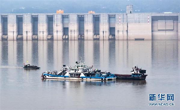 9月2日,清漂船舶在三峽大壩前清理水上漂浮物,為新一輪蓄水做準(zhǔn)備。新華社發(fā)(鄭家裕 攝)