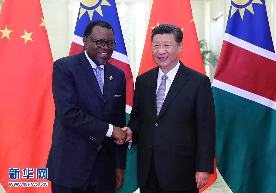 9月2日,國家主席習近平在北京人民大會堂會見納米比亞總統(tǒng)根哥布。新華社記者 謝環(huán)馳 攝