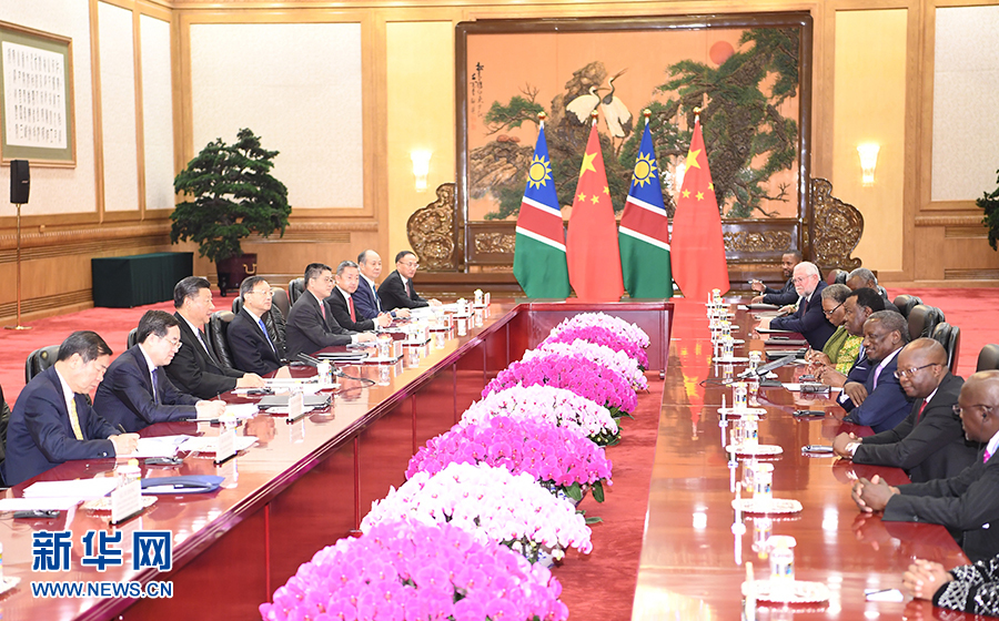 習近平強調(diào),今年3月總統(tǒng)先生訪華,我們共同宣布將中納關(guān)系提升為全面戰(zhàn)略合作伙伴關(guān)系,并對兩國合作作出全面規(guī)劃。我很高興雙方達成的各項共識都在有序落實。中方愿同納方繼續(xù)保持高層交往勢頭,在涉及彼此核心利益和重大關(guān)切問題上相互理解、相互支持。雙方要加強發(fā)展戰(zhàn)略對接,深化互利共贏合作,加強人文交流。在共建“一帶一路”和中非合作論壇框架內(nèi),推進基礎(chǔ)設(shè)施建設(shè)和產(chǎn)能領(lǐng)域合作。中方支持納方實現(xiàn)國家進一步發(fā)展的努力,愿同納方加強在國際和地區(qū)事務(wù)中的溝通協(xié)調(diào)。