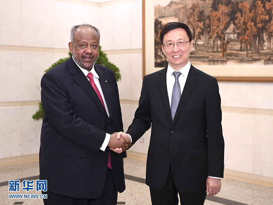 9月2日,國務(wù)院副總理韓正在北京釣魚臺國賓館會見吉布提總統(tǒng)蓋萊。 新華社記者 燕雁 攝
