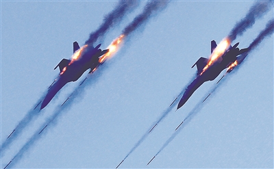 中方殲擊機對地面目標進行火力打擊。
