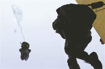 俄羅斯特戰(zhàn)隊員高空傘降。