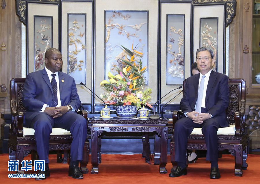 9月6日,中共中央政治局常委、中央紀(jì)委書記趙樂際在北京釣魚臺(tái)國(guó)賓館會(huì)見中非總統(tǒng)圖瓦德拉。 新華社記者 丁林 攝