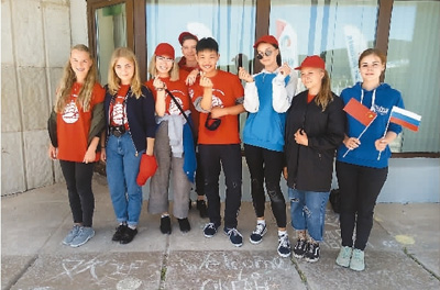 在中心主樓前的廣場上,俄羅斯孩子們穿著民族服飾、拿著各種樂器,載歌載舞,表達(dá)對中國朋友的歡迎。