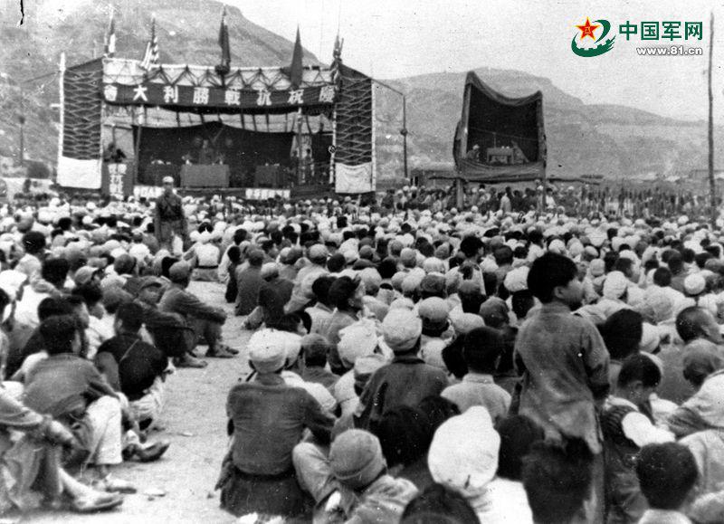 圖示:延安軍民慶??箲?zhàn)勝利。