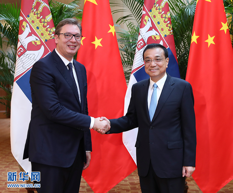 9月19日,國務(wù)院總理李克強(qiáng)在天津迎賓館會(huì)見來華出席夏季達(dá)沃斯論壇的塞爾維亞總統(tǒng)武契奇。新華社記者 丁海濤 攝