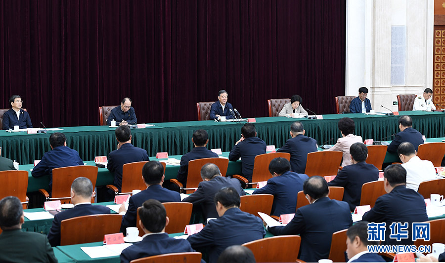 9月20日,中共中央政治局常委、全國(guó)政協(xié)主席、中央代表團(tuán)團(tuán)長(zhǎng)汪洋在銀川聽(tīng)取寧夏回族自治區(qū)黨委、政府工作匯報(bào)。 新華社記者 張領(lǐng) 攝