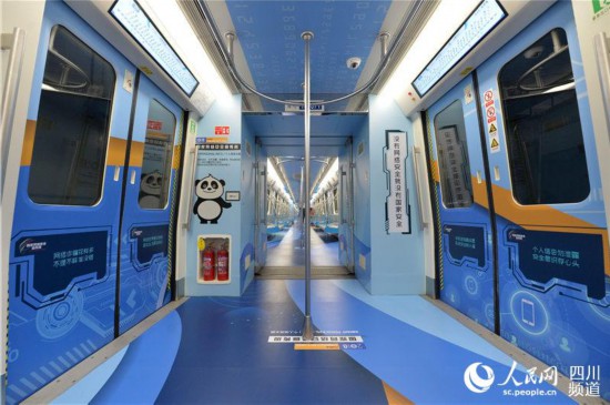圖注:成都為2018年國家網(wǎng)絡(luò)安全宣傳周設(shè)計的地鐵主題列車“安安號”(攝影 王軍)